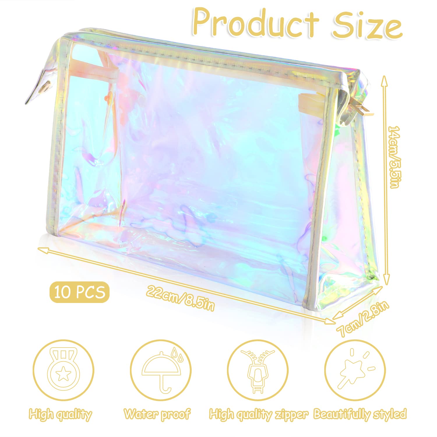 BESARME 10 Pcs Holographic Makeup Bags, Clear PVC Makeup Bag Iridescent Pouch Portable Zippered Toiletry Bag Waterproof Cosmetic Bags Stocking Stuffers for Women Girls Bathroom Vacation
